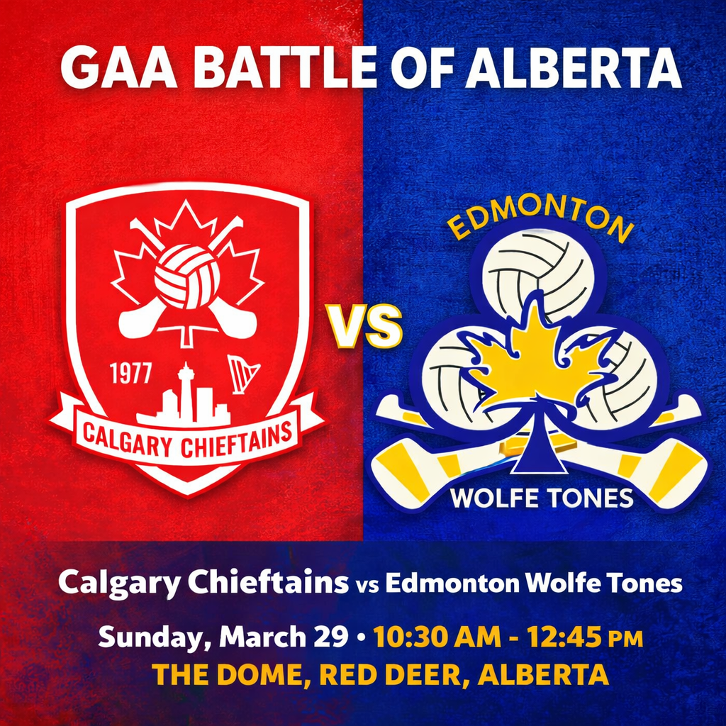 Battle of Alberta GAA match Sunday, March 29, 2026 10:30β―AM 12:45β―PM 10:30 12:45 The Dome 334 Energy way, Red deer AB, T4E 0A7 Canada (map) Google Calendar ICS